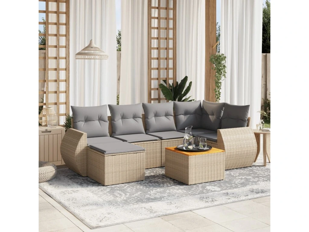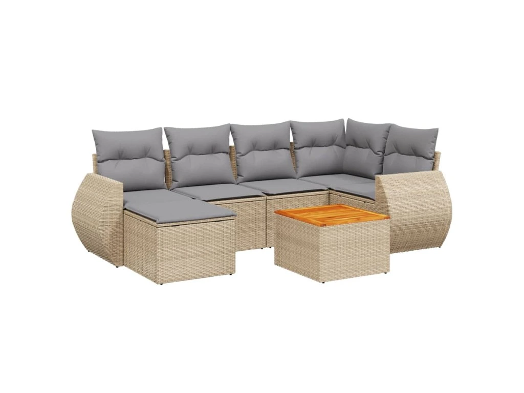 7dílná zahradní sedací souprava s poduškami béžová polyratan 3225107