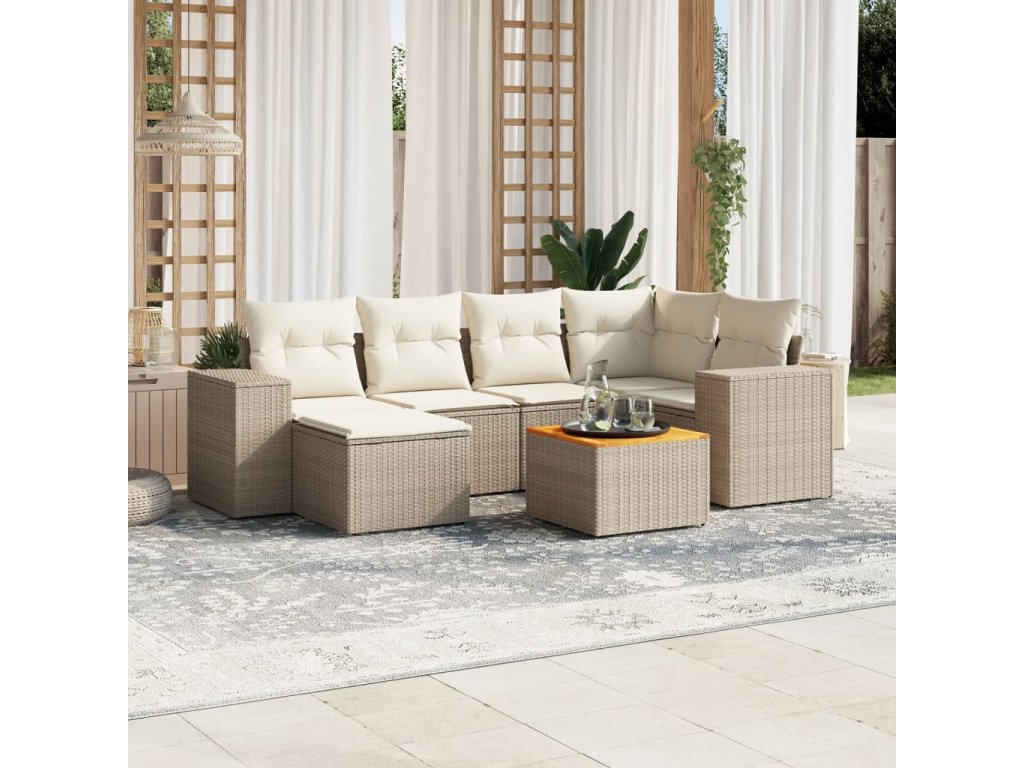 7dílná zahradní sedací souprava s poduškami béžová polyratan 3225547