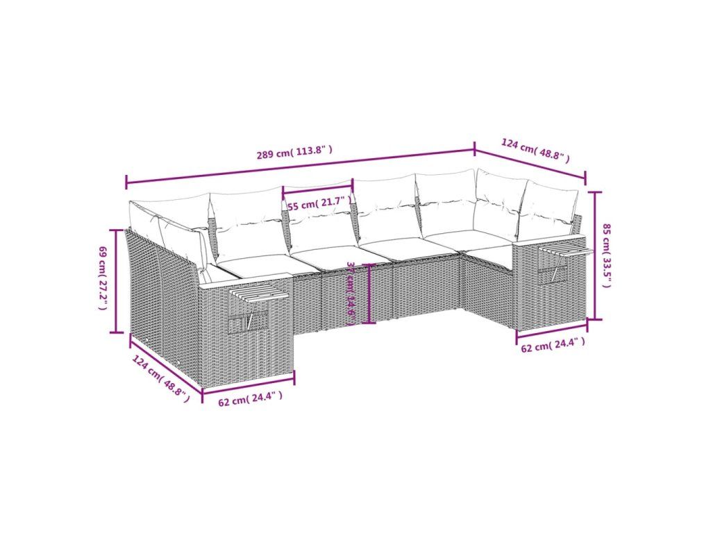 7dílná zahradní sedací souprava s poduškami béžová polyratan 3227109