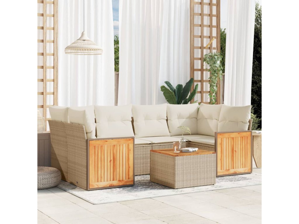 7dílná zahradní sedací souprava s poduškami béžová polyratan 3227479