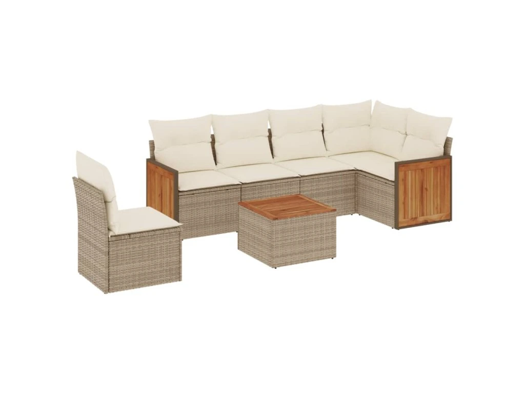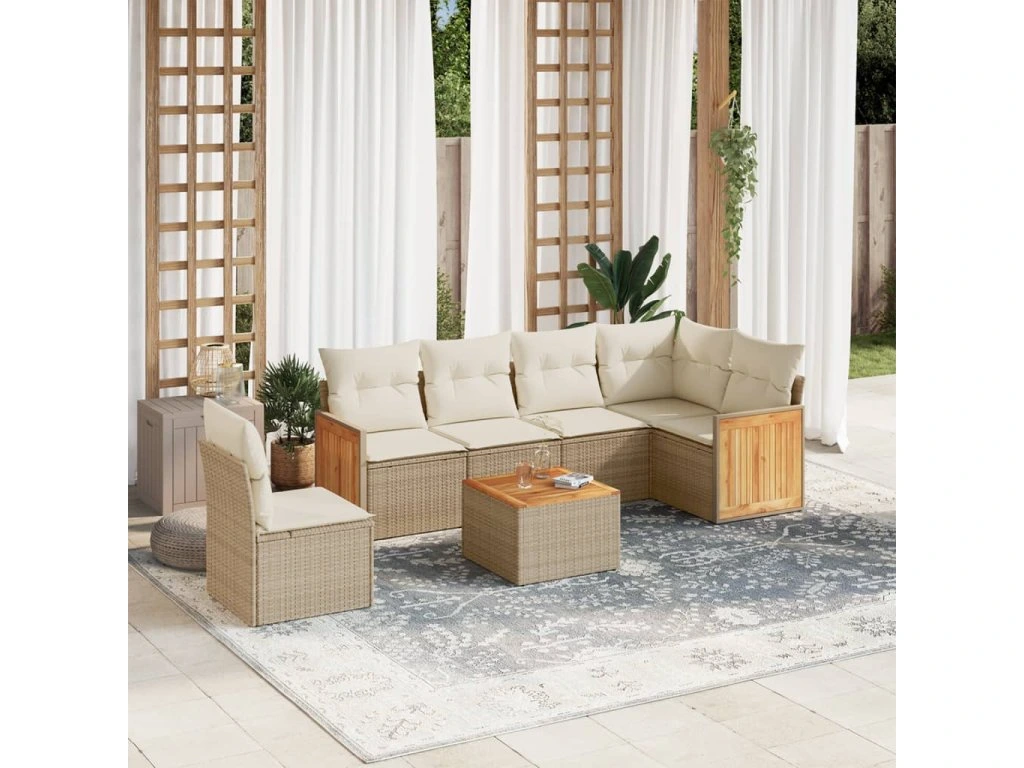 7dílná zahradní sedací souprava s poduškami béžová polyratan 3227703