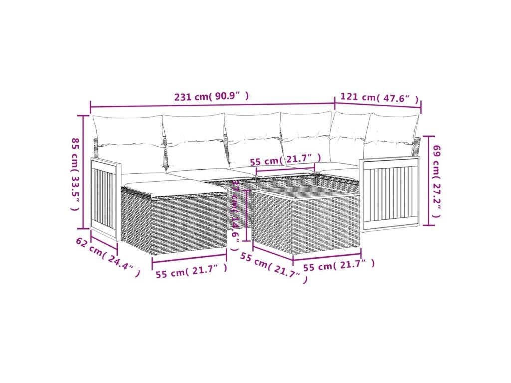 Tato zahradní sedací souprava je dokonalým doplňkem vaší zahrady, terasy nebo dvorku a poskytne vám pohodlné a příjemné místo, kde si můžete povídat s rodinou a přáteli nebo jen tak odpočívat a užívat si pobyt venku.