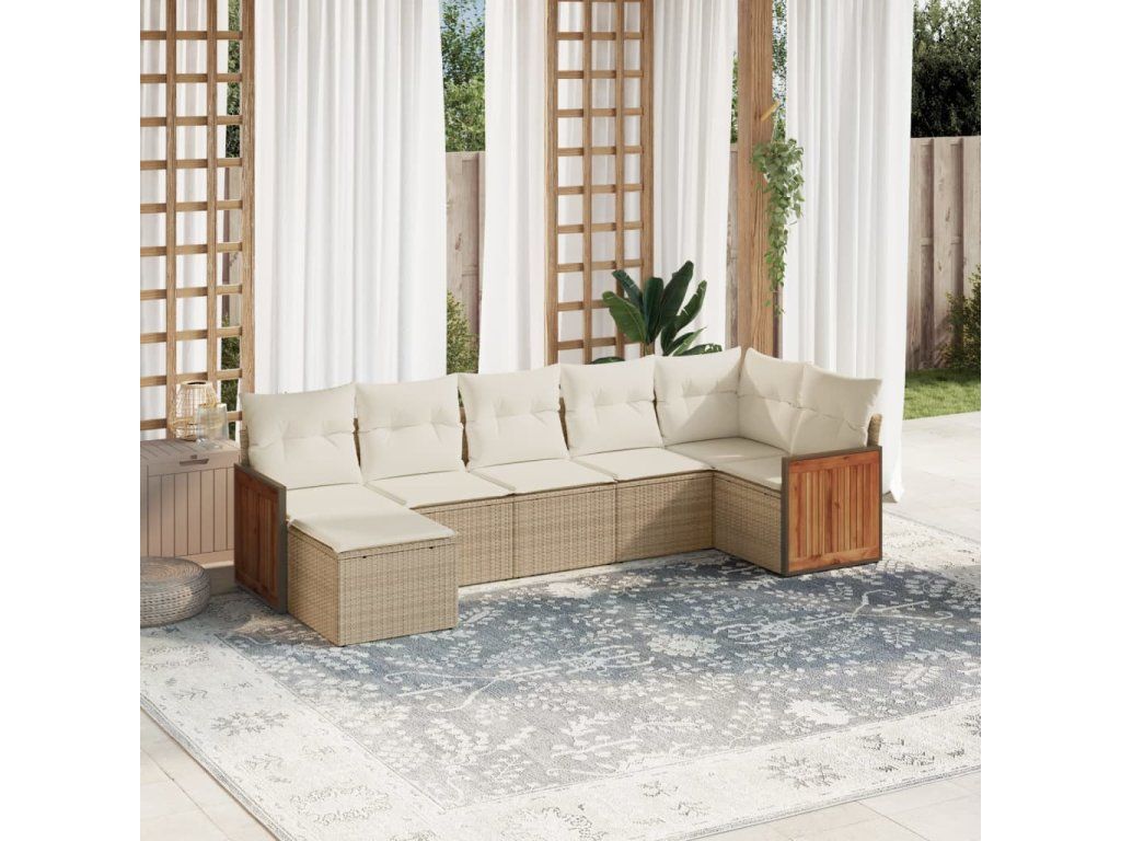 7dílná zahradní sedací souprava s poduškami béžová polyratan 3227871