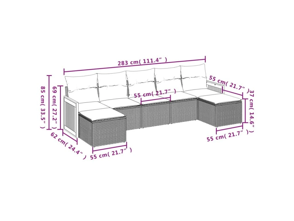 Tato zahradní sedací souprava je dokonalým doplňkem vaší zahrady, terasy nebo dvorku a poskytne vám pohodlné a příjemné místo, kde si můžete povídat s rodinou a přáteli nebo jen tak odpočívat a užívat si pobyt venku.
