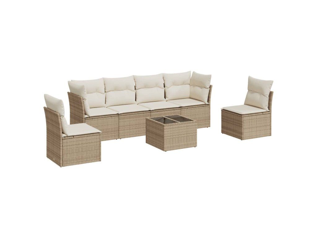 7dílná zahradní sedací souprava s poduškami béžová polyratan 3249217