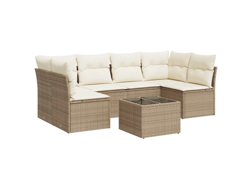 7dílná zahradní sedací souprava s poduškami béžová polyratan 3249237