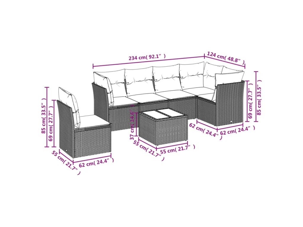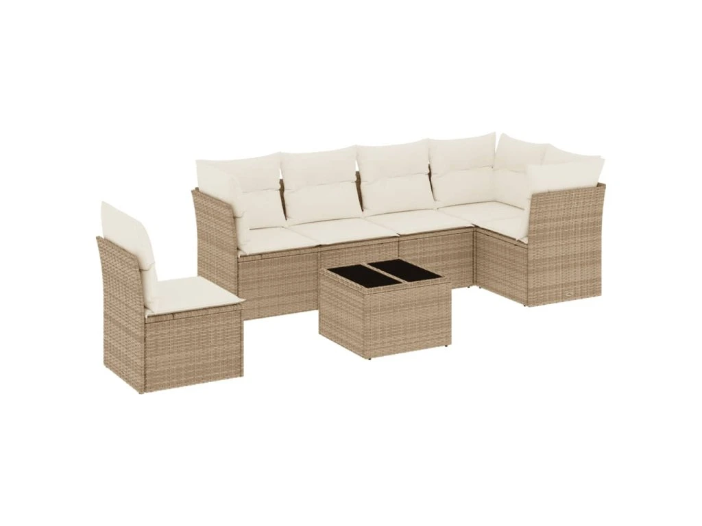 7dílná zahradní sedací souprava s poduškami béžová polyratan 3249547