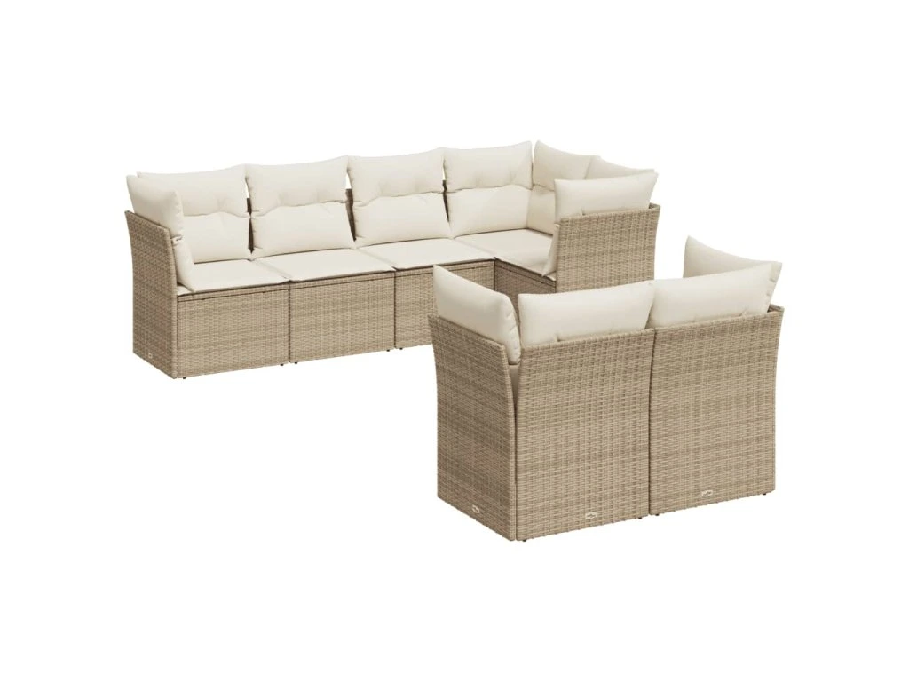 7dílná zahradní sedací souprava s poduškami béžová polyratan 3249737