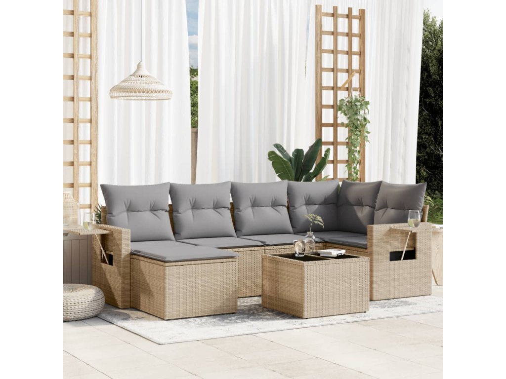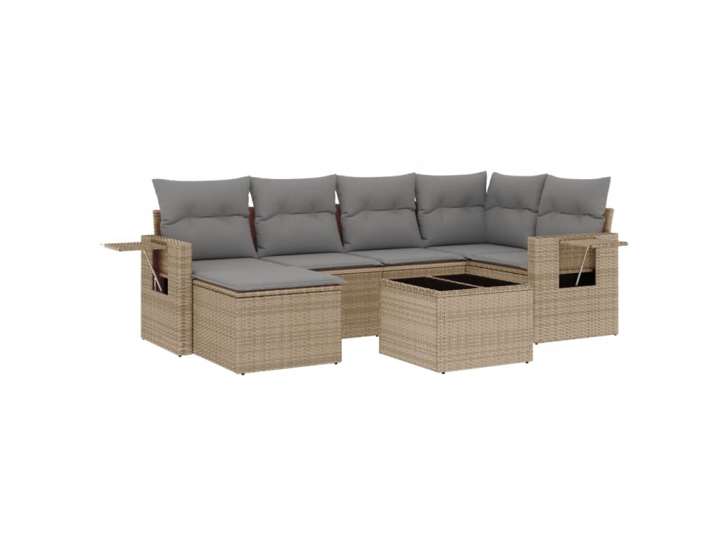 7dílná zahradní sedací souprava s poduškami béžová polyratan 3252806