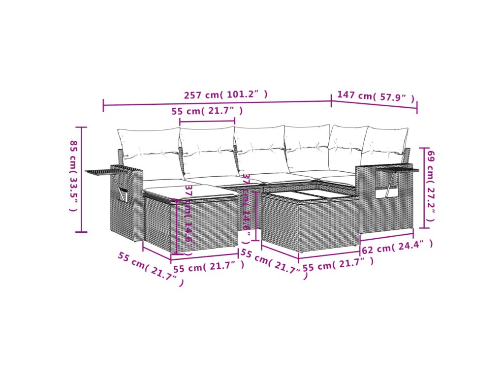 Tato zahradní sedací souprava je dokonalým doplňkem vaší zahrady, terasy nebo dvorku a poskytne vám pohodlné a příjemné místo, kde si můžete povídat s rodinou a přáteli nebo jen tak odpočívat a užívat si pobyt venku.
