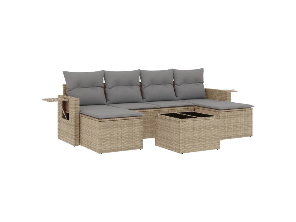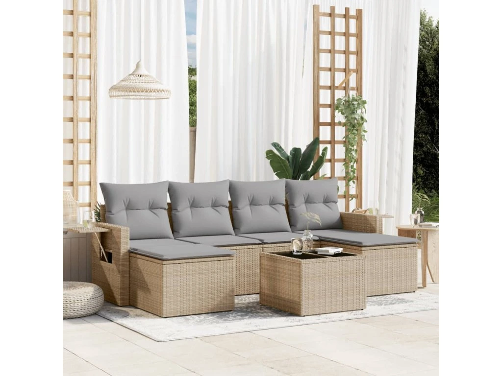 7dílná zahradní sedací souprava s poduškami béžová polyratan 3252866