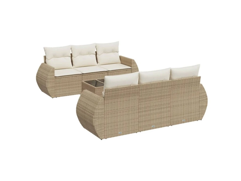 7dílná zahradní sedací souprava s poduškami béžová polyratan 3253445