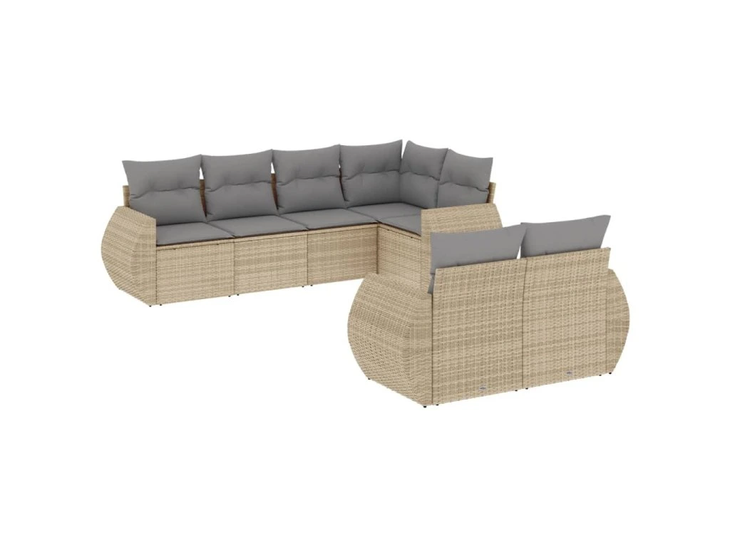 7dílná zahradní sedací souprava s poduškami béžová polyratan 3253946