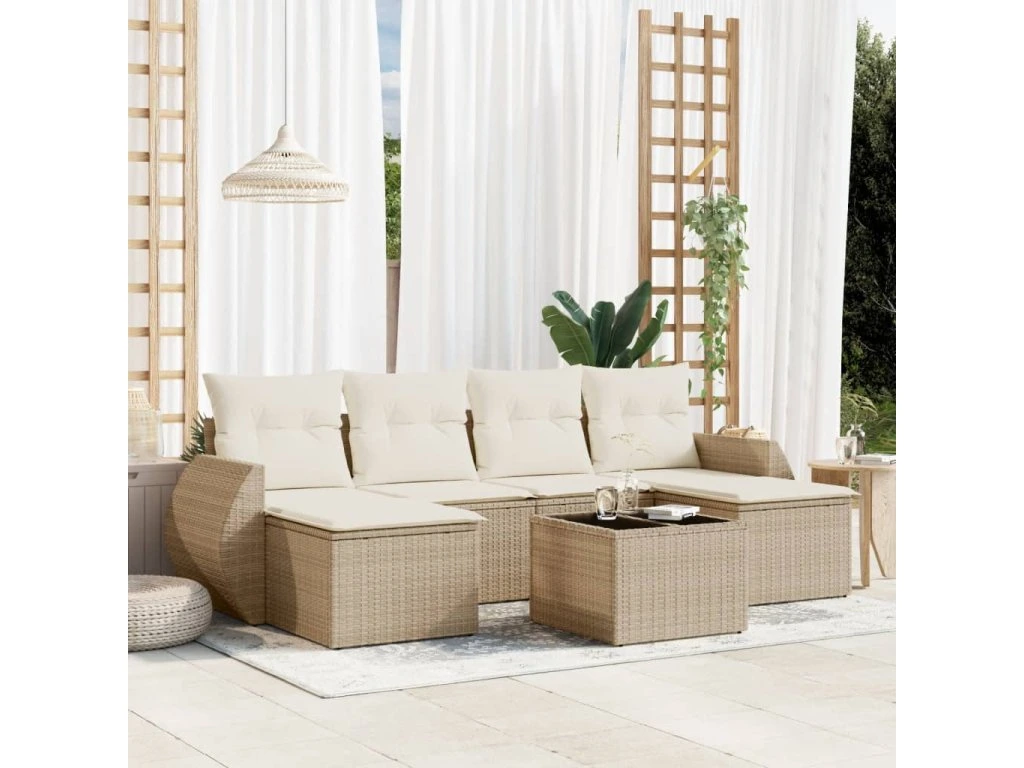 7dílná zahradní sedací souprava s poduškami béžová polyratan 3254065