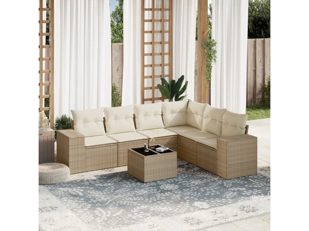 7dílná zahradní sedací souprava s poduškami béžová polyratan 3254955