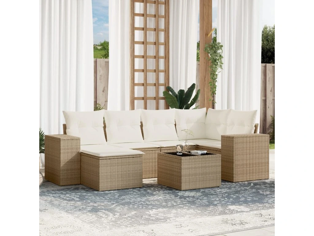 7dílná zahradní sedací souprava s poduškami béžová polyratan 3255205
