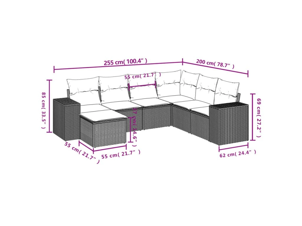 Tato zahradní sedací souprava je dokonalým doplňkem vaší zahrady, terasy nebo dvorku a poskytne vám pohodlné a příjemné místo, kde si můžete povídat s rodinou a přáteli nebo jen tak odpočívat a užívat si pobyt venku.