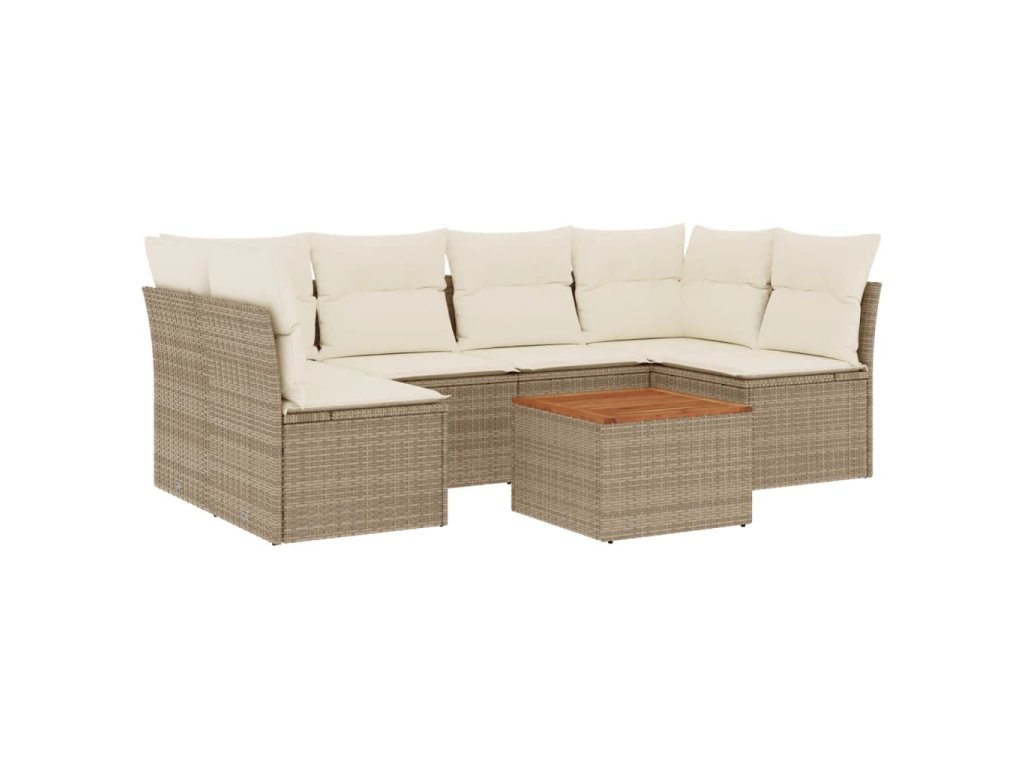 7dílná zahradní sedací souprava s poduškami béžová polyratan 3255890
