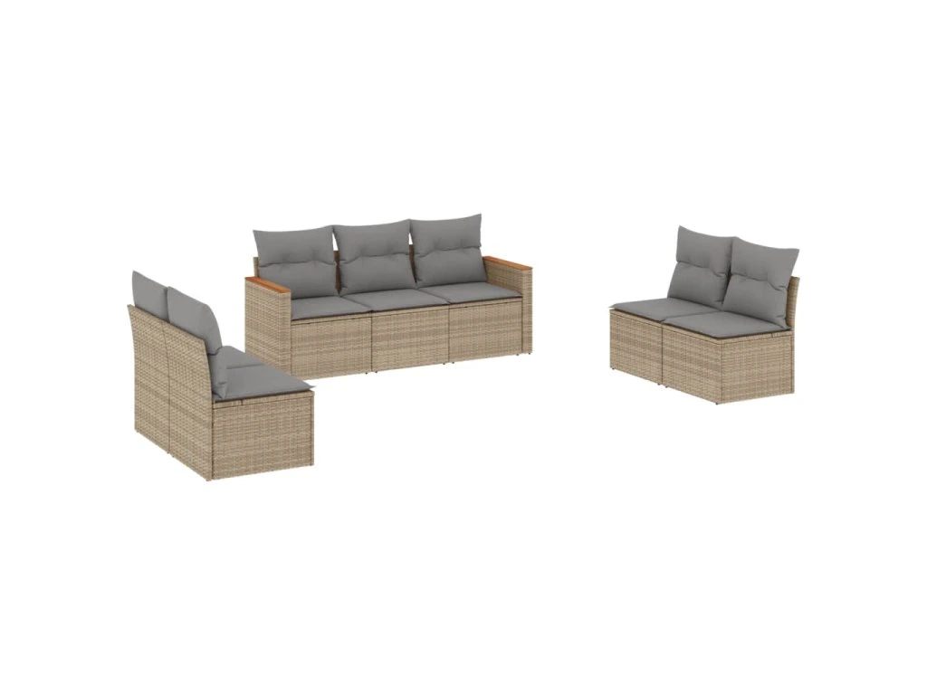 7dílná zahradní sedací souprava s poduškami béžová polyratan 3258279