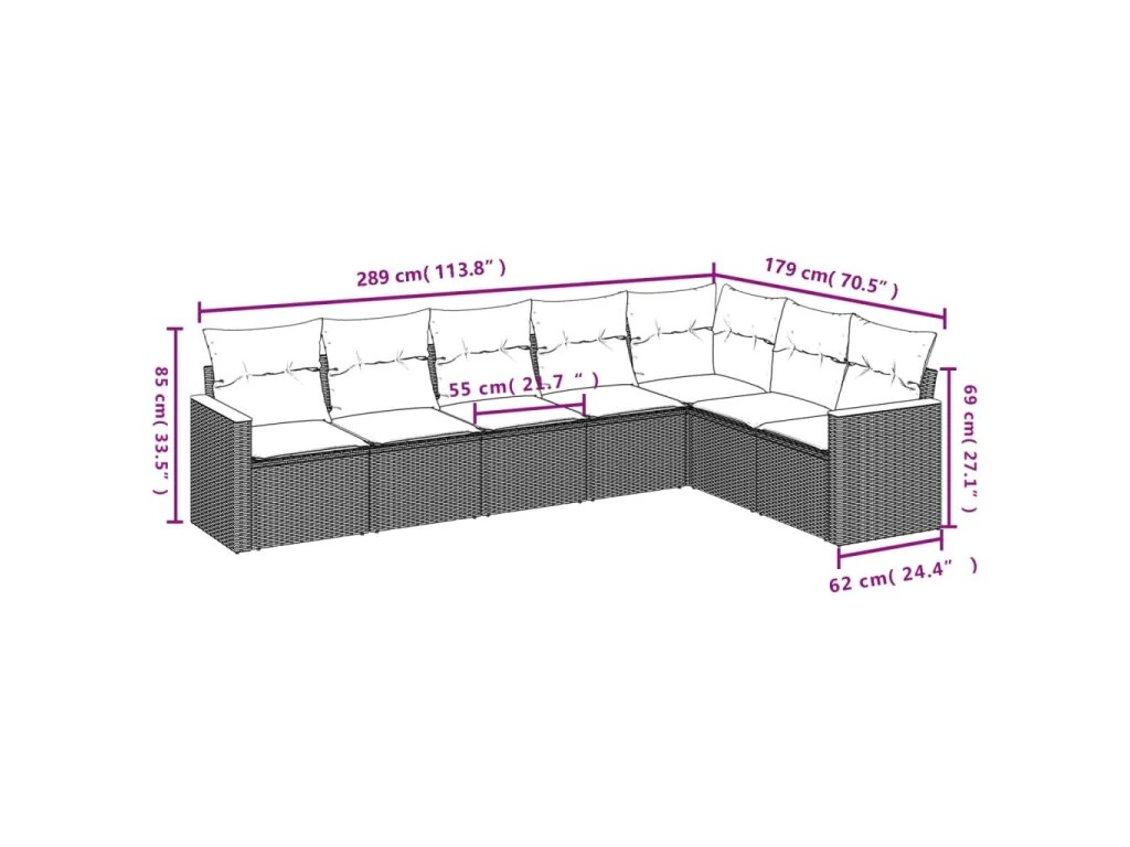 7dílná zahradní sedací souprava s poduškami béžová polyratan 3258433