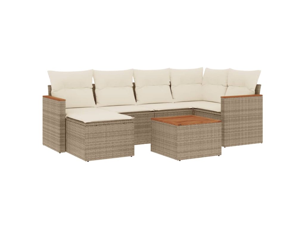 7dílná zahradní sedací souprava s poduškami béžová polyratan 3258586