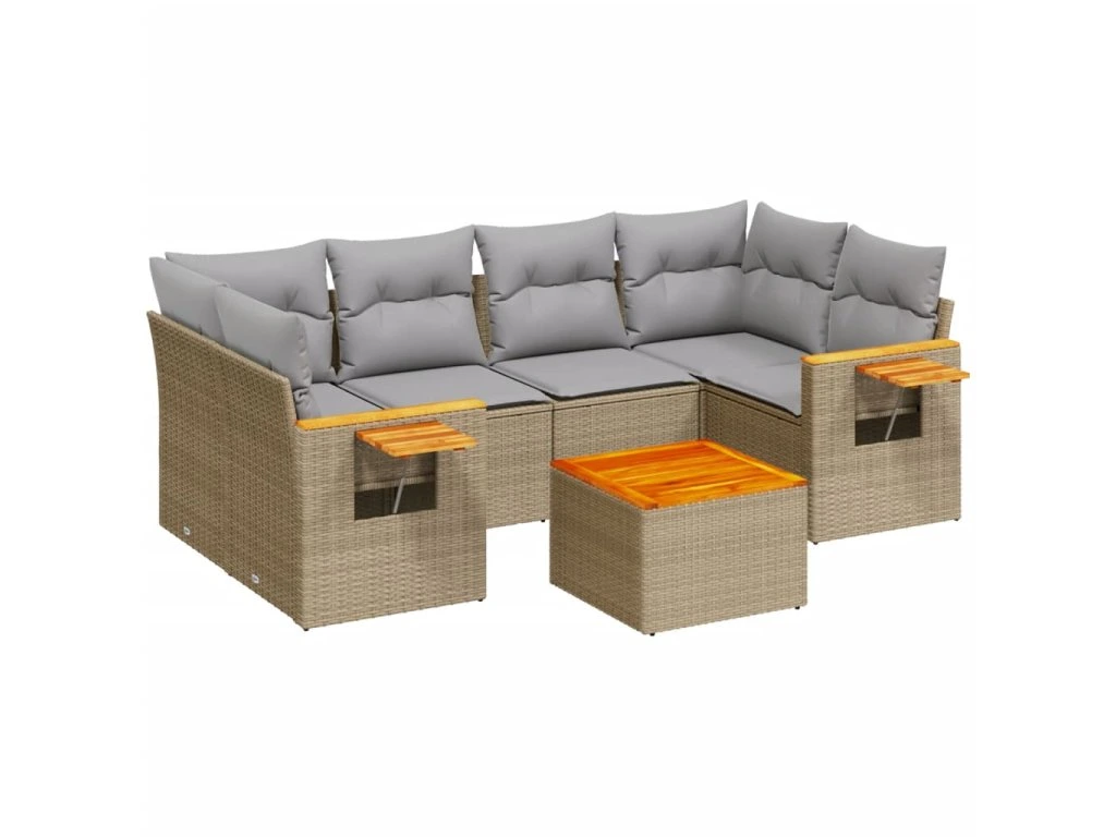 7dílná zahradní sedací souprava s poduškami béžová polyratan 3259042