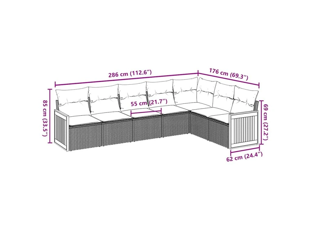 7dílná zahradní sedací souprava s poduškami béžová polyratan 3260113