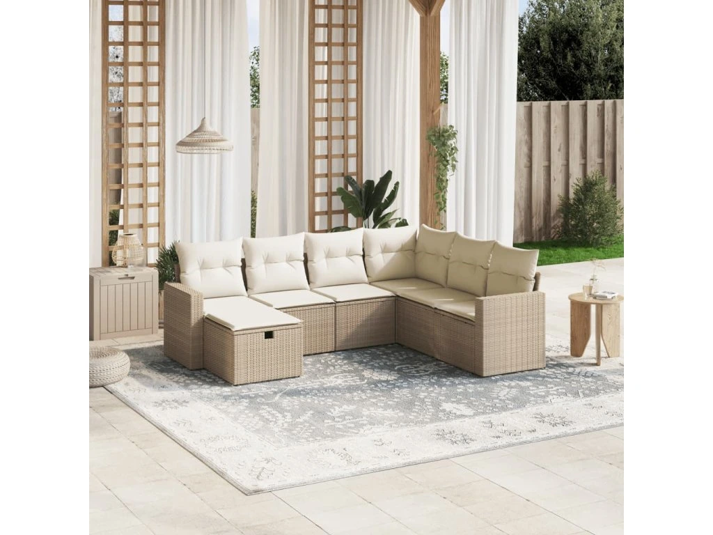 7dílná zahradní sedací souprava s poduškami béžová polyratan 3263524