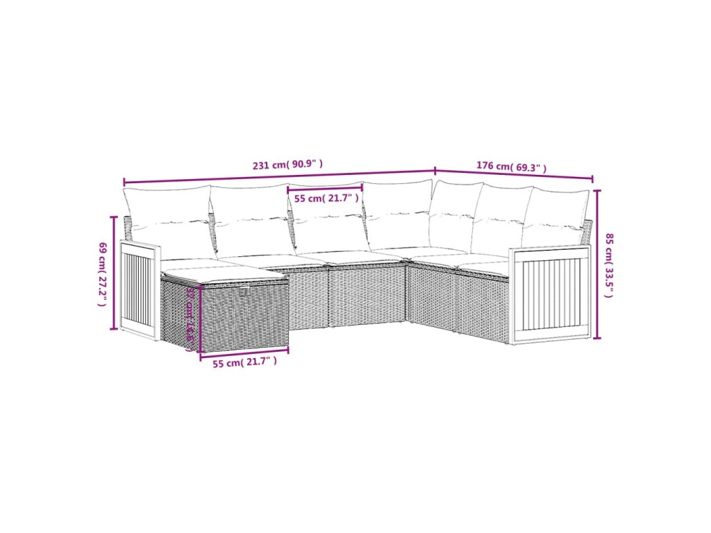 Tato zahradní sedací souprava je dokonalým doplňkem vaší zahrady, terasy nebo dvorku a poskytne vám pohodlné a příjemné místo, kde si můžete povídat s rodinou a přáteli nebo jen tak odpočívat a užívat si pobyt venku.
