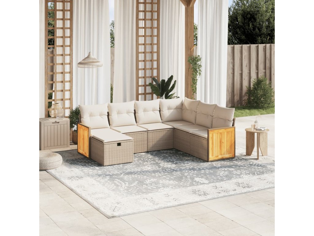 7dílná zahradní sedací souprava s poduškami béžová polyratan 3265762