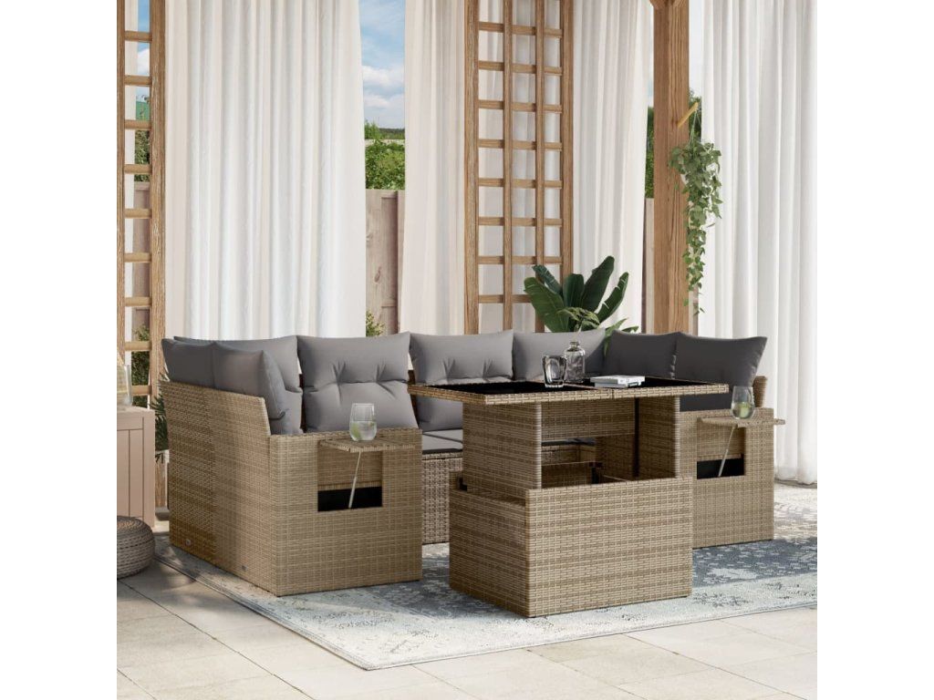 7dílná zahradní sedací souprava s poduškami béžová polyratan 3267759