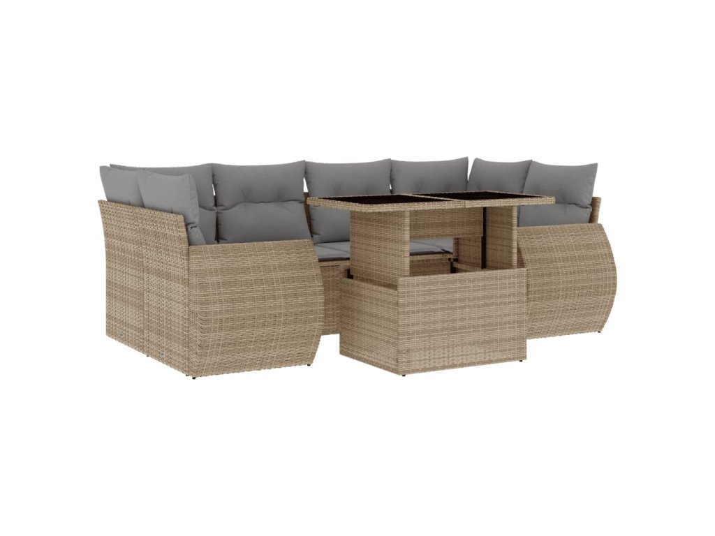 7dílná zahradní sedací souprava s poduškami béžová polyratan 3268389