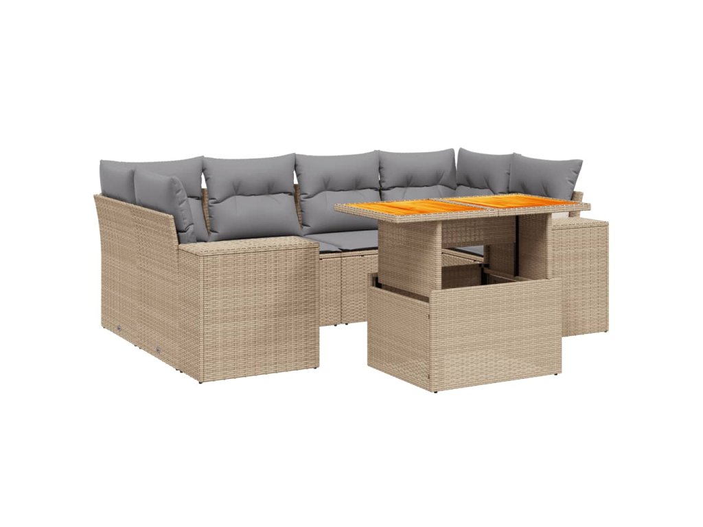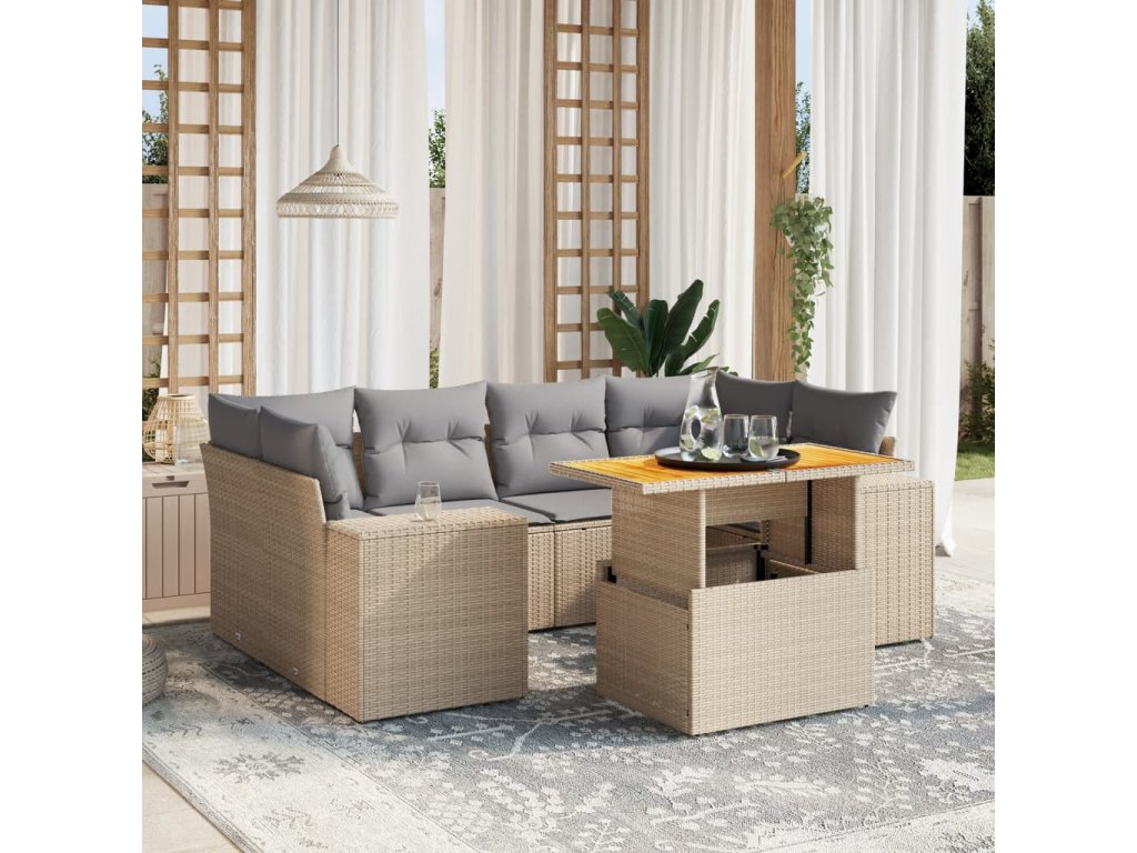 7dílná zahradní sedací souprava s poduškami béžová polyratan 3272536