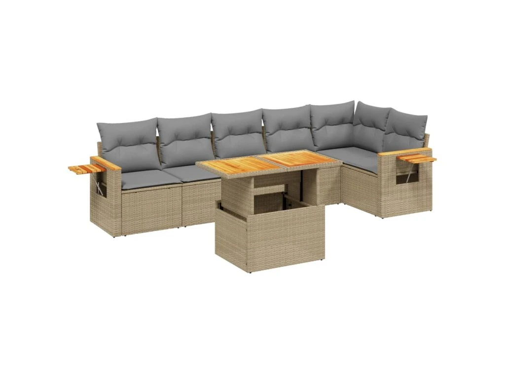 7dílná zahradní sedací souprava s poduškami béžová polyratan 3273530