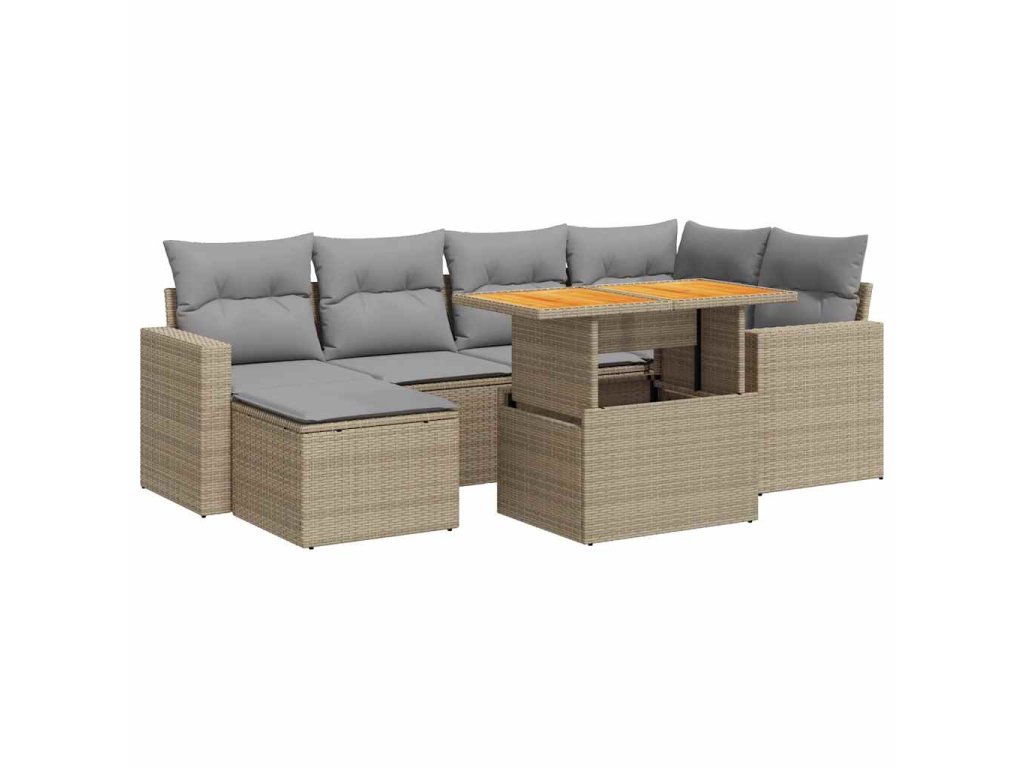 7dílná zahradní sedací souprava s poduškami béžová polyratan 3327062