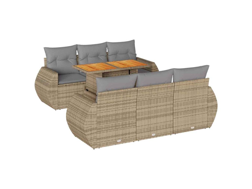 7dílná zahradní sedací souprava s poduškami béžová polyratan 3327223