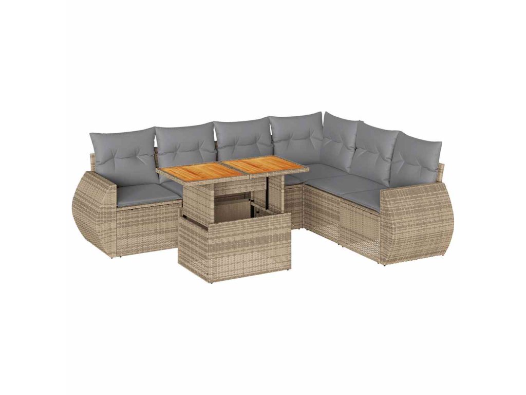 7dílná zahradní sedací souprava s poduškami béžová polyratan 3327272