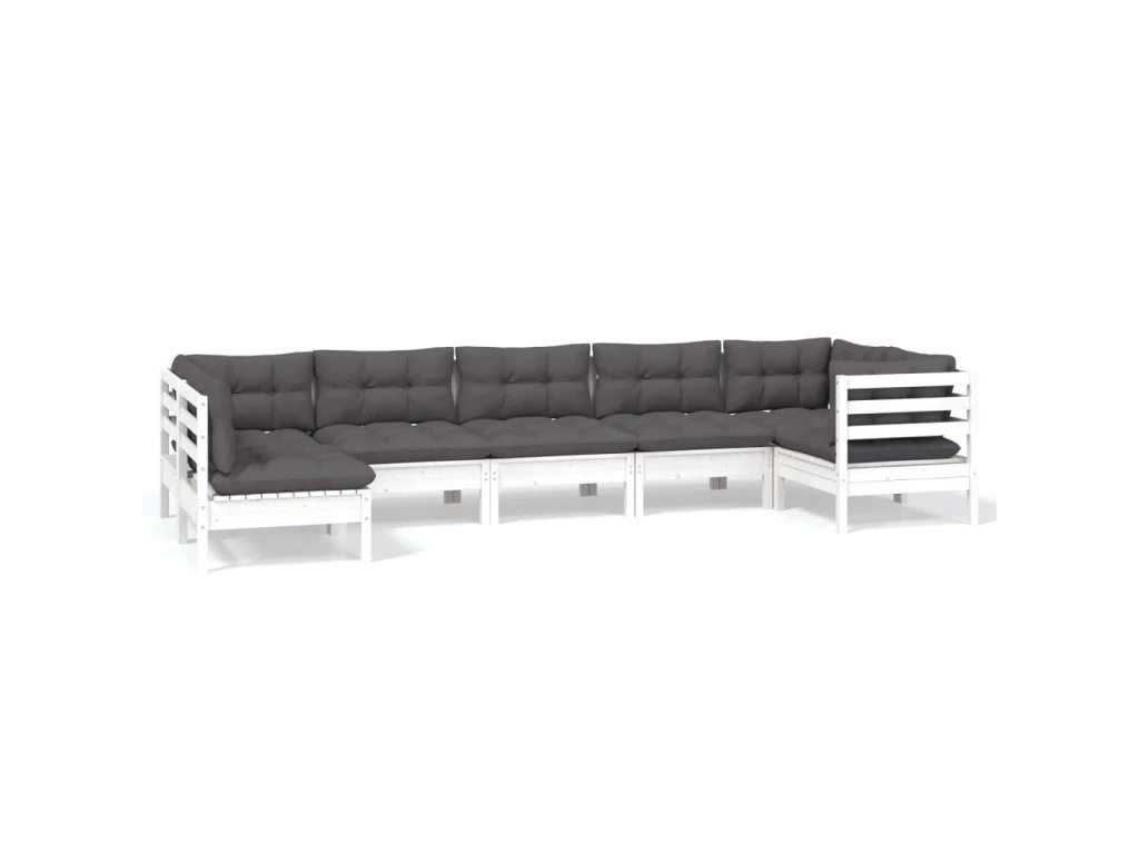 7dílná zahradní sedací souprava s poduškami bílá borovice 3096431