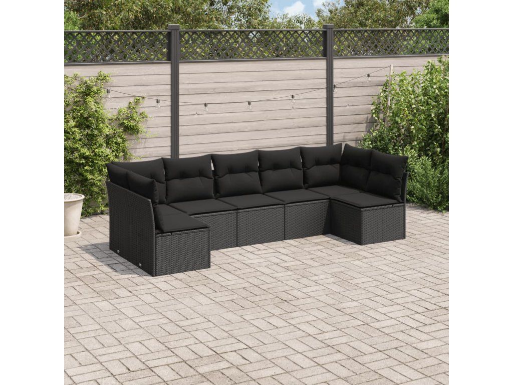 7dílná zahradní sedací souprava s poduškami černá polyratan 3217425