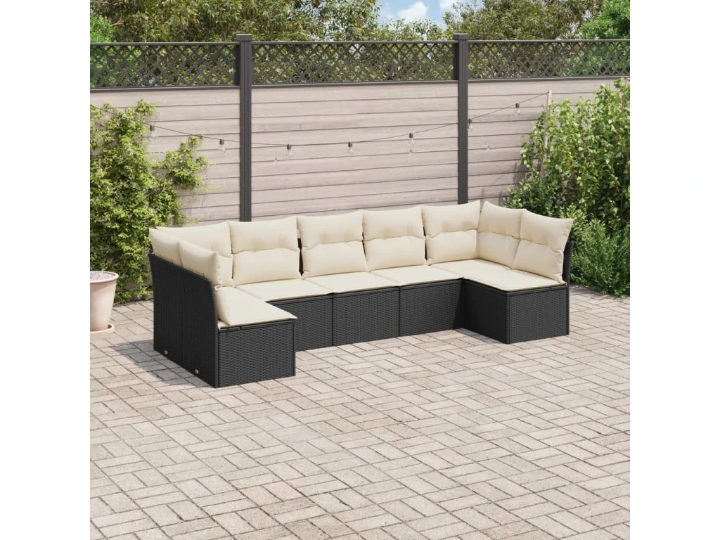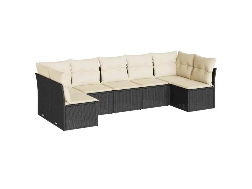 7dílná zahradní sedací souprava s poduškami černá polyratan 3217426