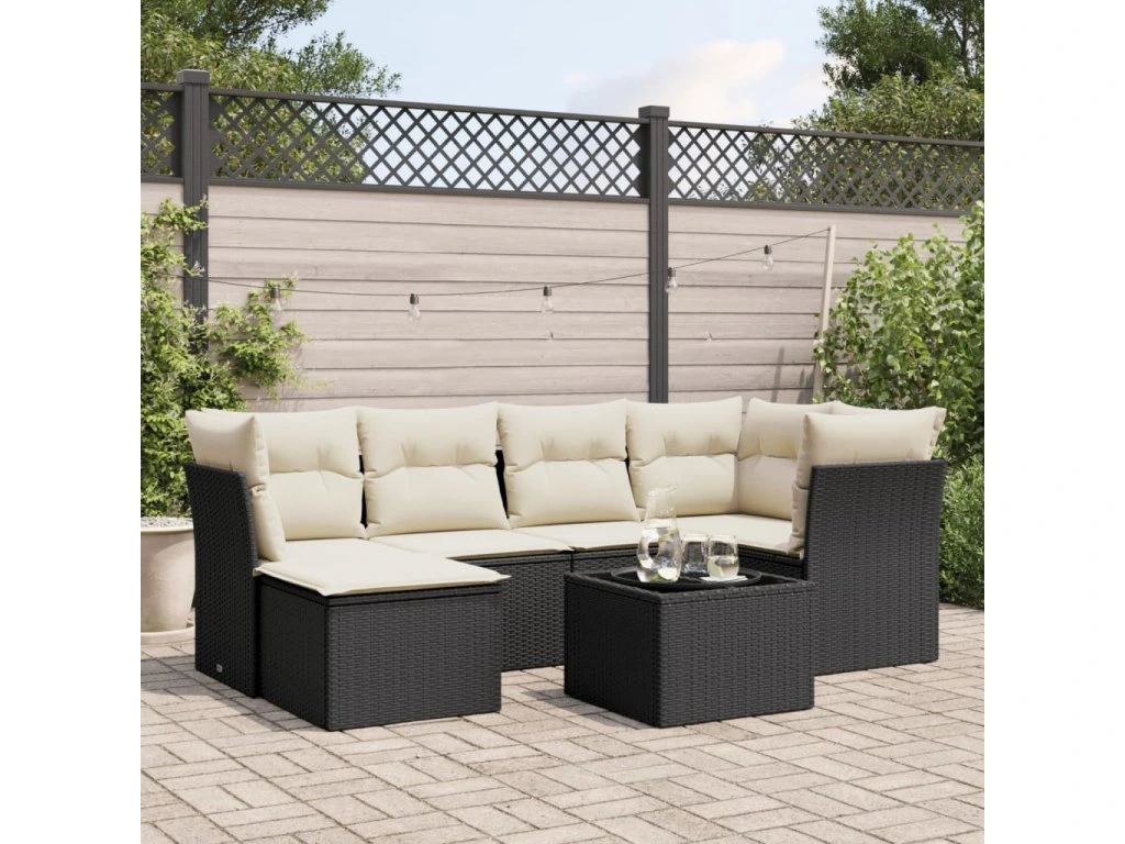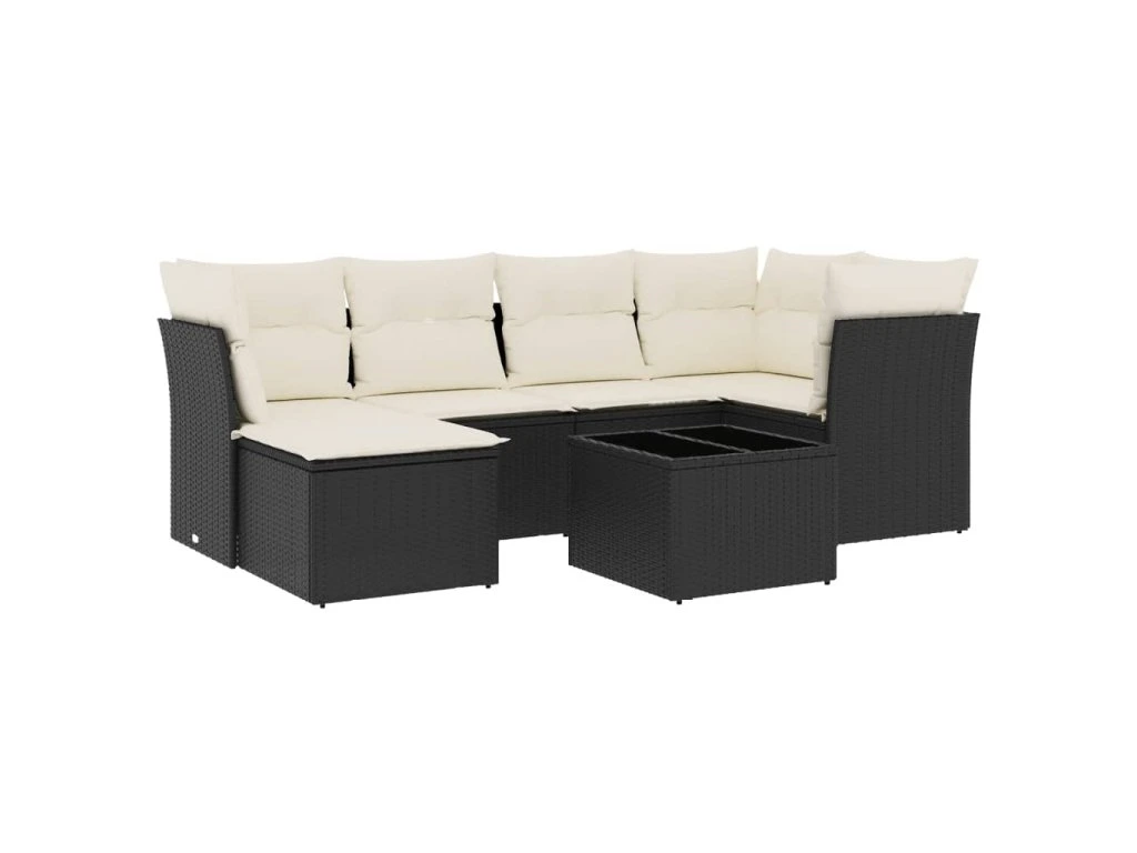 7dílná zahradní sedací souprava s poduškami černá polyratan 3217956