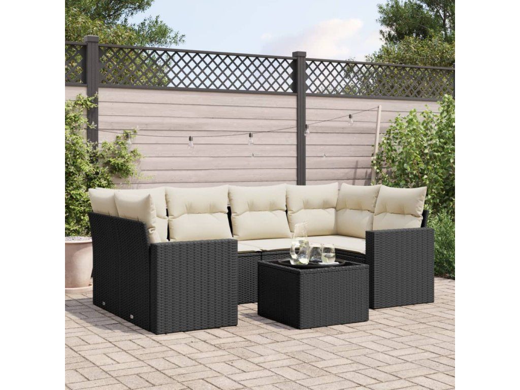 7dílná zahradní sedací souprava s poduškami černá polyratan 3218706