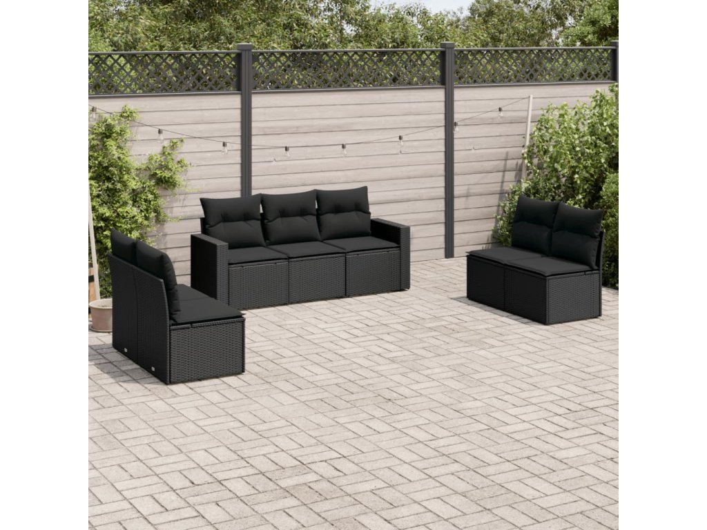 7dílná zahradní sedací souprava s poduškami černá polyratan 3218815