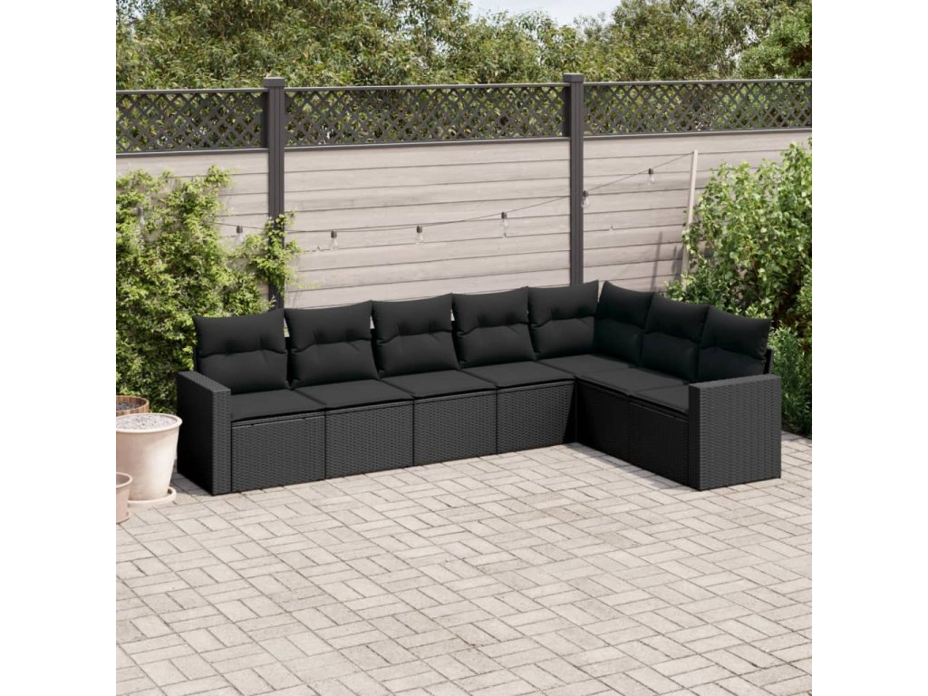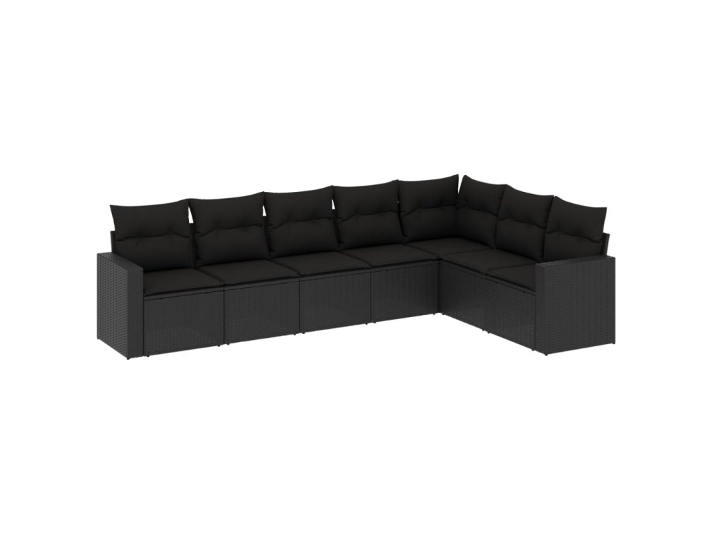 7dílná zahradní sedací souprava s poduškami černá polyratan 3219035