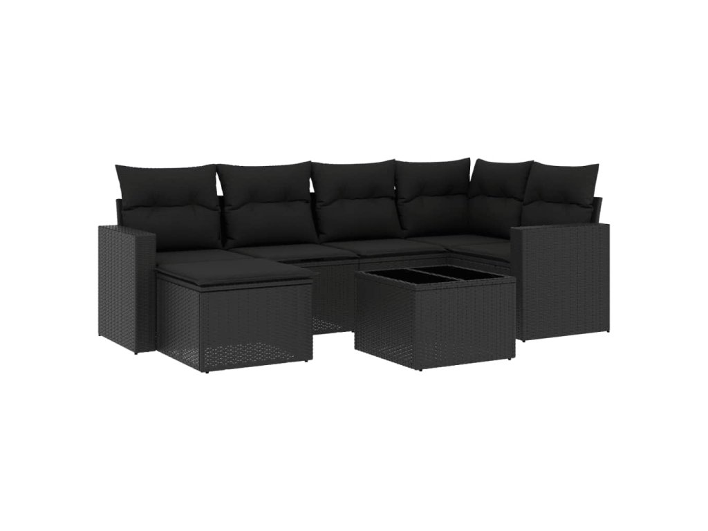 7dílná zahradní sedací souprava s poduškami černá polyratan 3219255