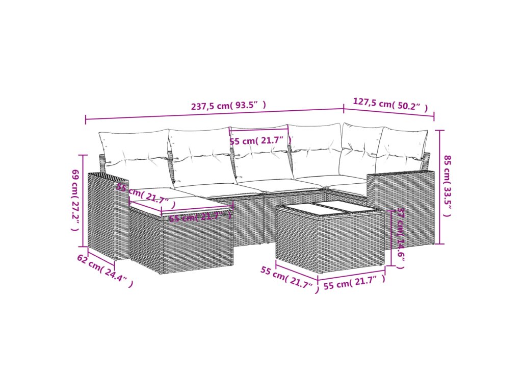 Tato zahradní sedací souprava je dokonalým doplňkem vaší zahrady, terasy nebo dvorku a poskytne vám pohodlné a příjemné místo, kde si můžete povídat s rodinou a přáteli nebo jen tak odpočívat a užívat si pobyt venku.