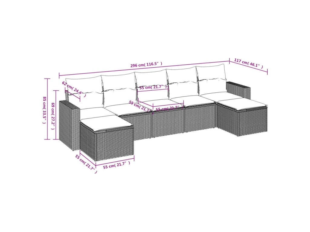 Tato zahradní sedací souprava je dokonalým doplňkem vaší zahrady, terasy nebo dvorku a poskytne vám pohodlné a příjemné místo, kde si můžete povídat s rodinou a přáteli nebo jen tak odpočívat a užívat si pobyt venku.