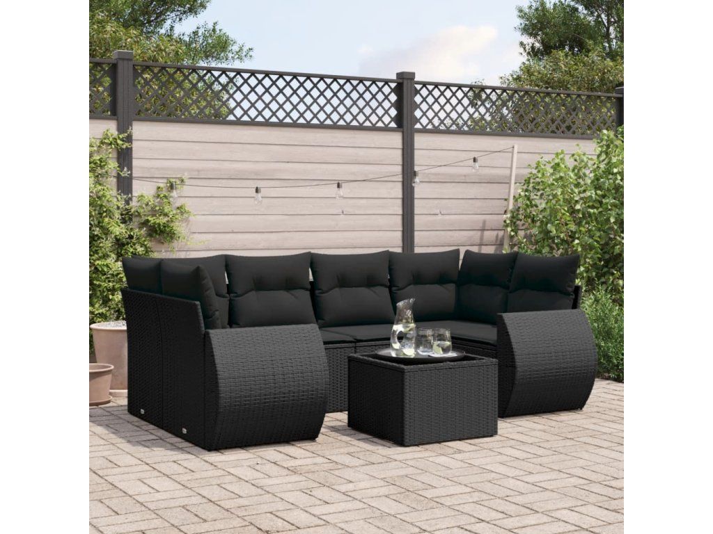 7dílná zahradní sedací souprava s poduškami černá polyratan 3221114
