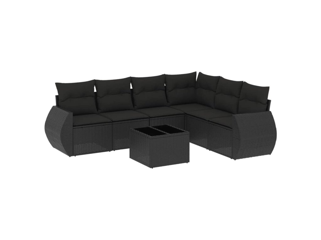 7dílná zahradní sedací souprava s poduškami černá polyratan 3221414