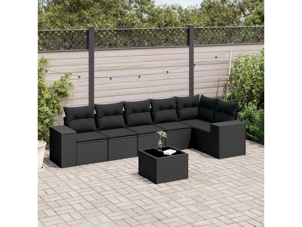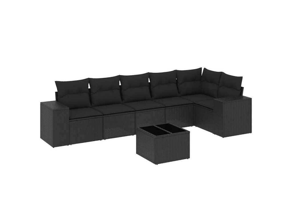 7dílná zahradní sedací souprava s poduškami černá polyratan 3222594